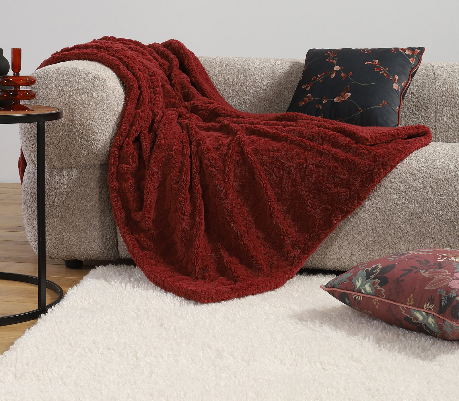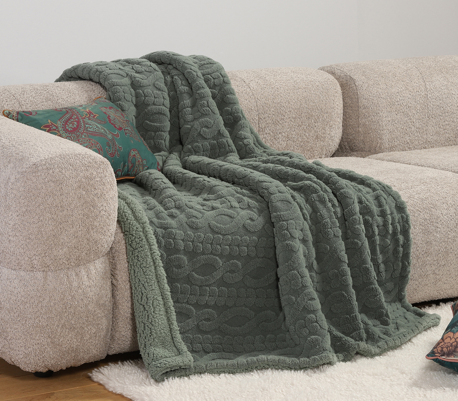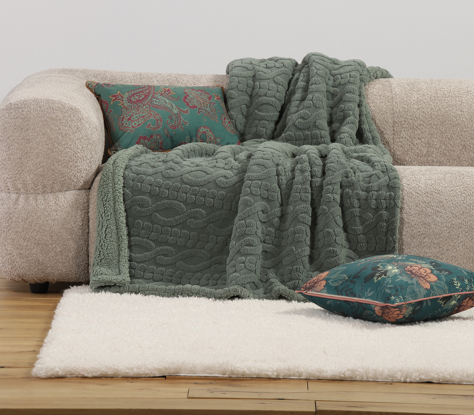 Διακοσμητικό ριχτάρι πολυθρόνας, διάστασης 130x180cm από 100% πολευστέρα βάρους 460gr/m2και 100% σέρπα από την πίσω πλευρά.
