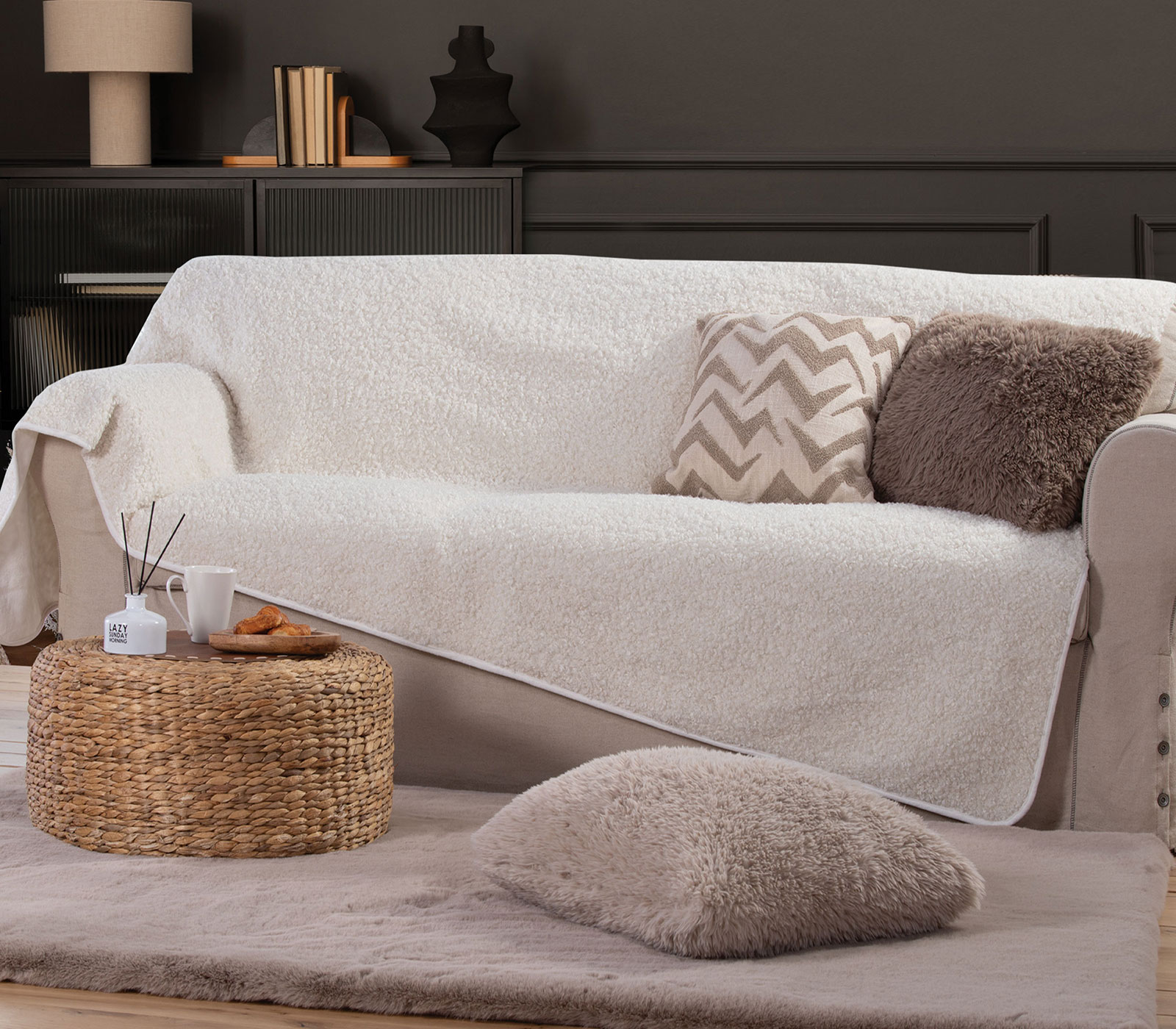 Ριχτάρι πολυθρόνας διάστασης 150x180cm, με ύφασμα από γούνα rabbit fur 530 gr/m2 στην μπροστινή πλευρά